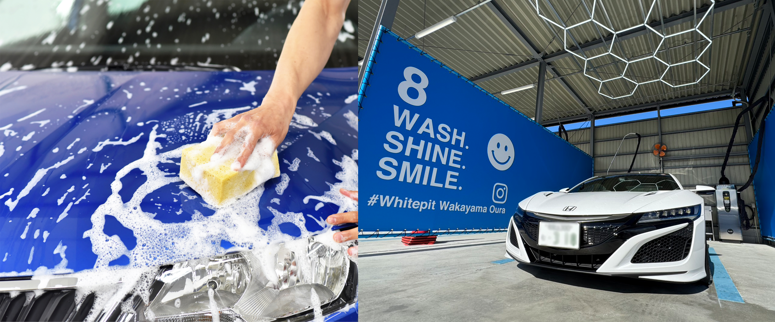 写真が映えるハニカムライト導入により、愛車の艶・ラインがくっきり。洗車後はぜひ撮影もOKです。